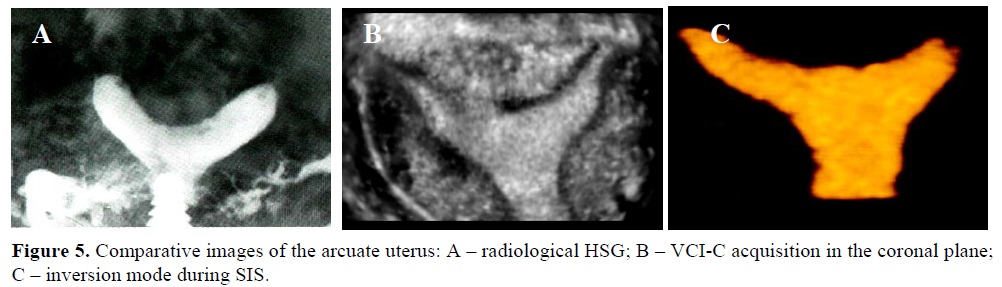 An accurate diagnosis in all cases implies a very good visualization of the uterine cavity, with focus on the fundus, and a delineation of the uterine external contour. So far, the most commonly used diagnostic method was hysterosalpingography (HSG). It provides excellent view of the uterine cavity and cervical canal as well as, information related to tubal patency, but no data regarding the fundal shape. Moreover, it exposes the patient to ionizing radiation and requires an X-ray laboratory. Alternative method for external visualization of the uterus is laparoscopy, which is expensive, invasive, gives no information regarding the endometrial cavity. MRI may be employed in certain cases, with very good results, but at high costs.