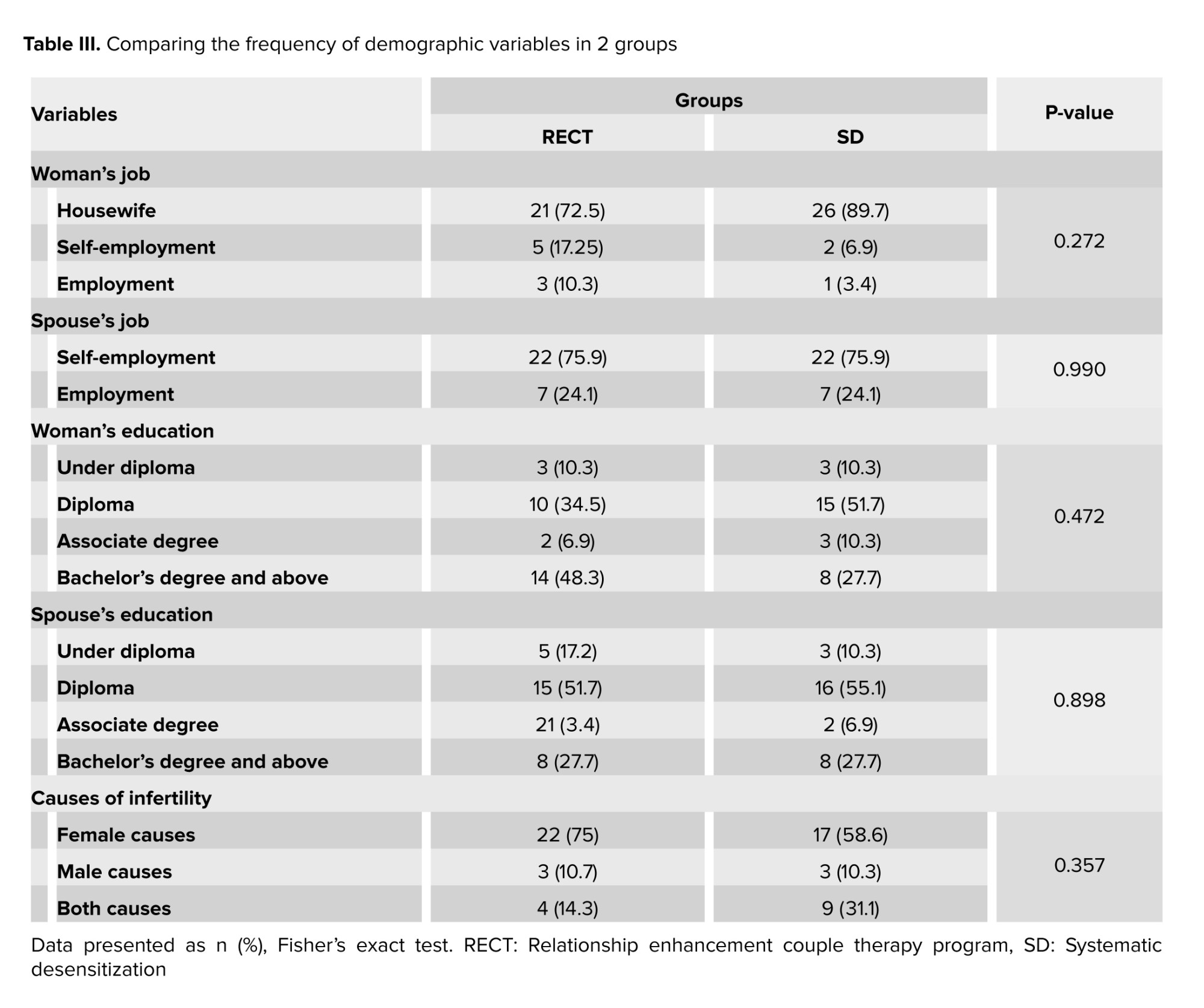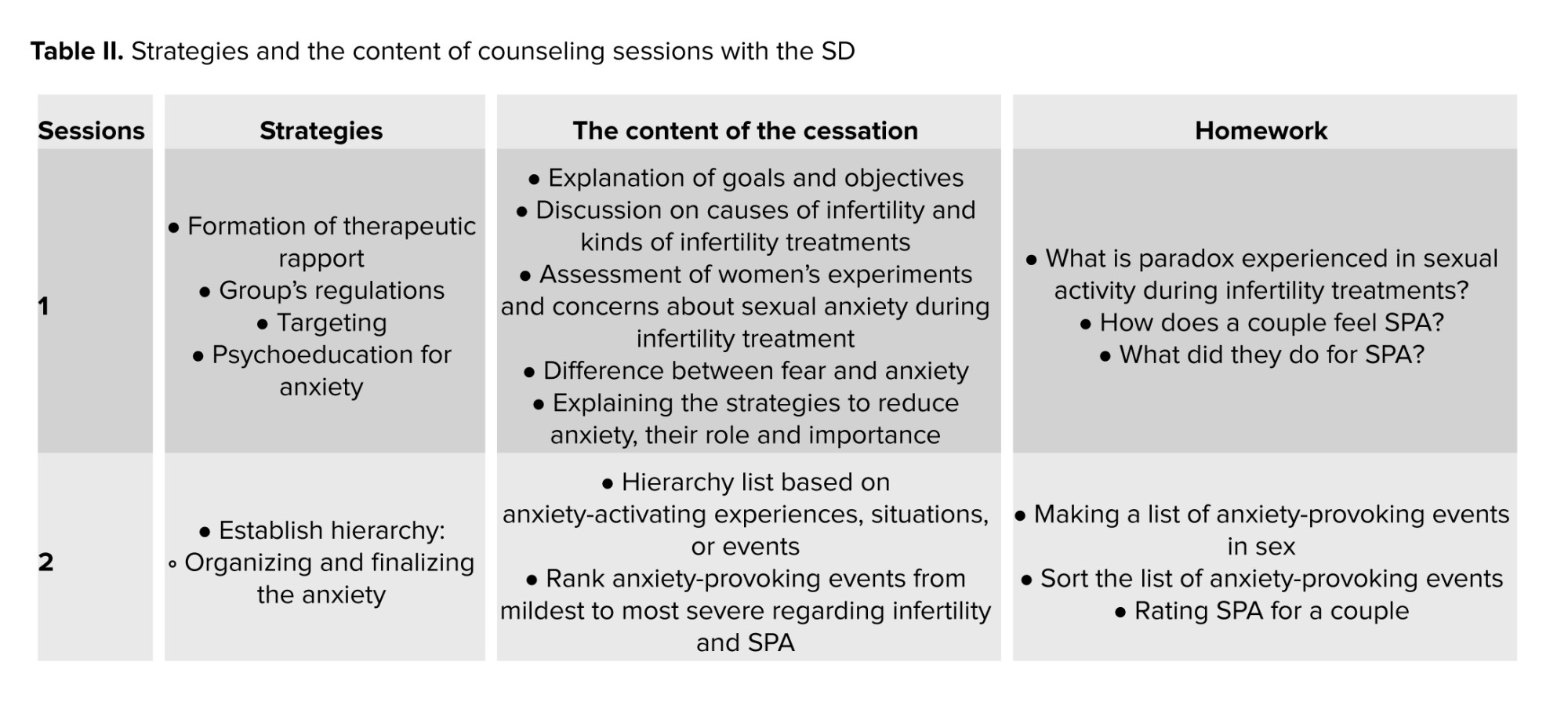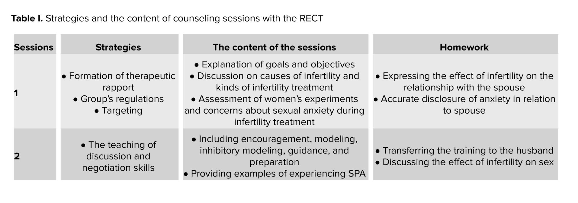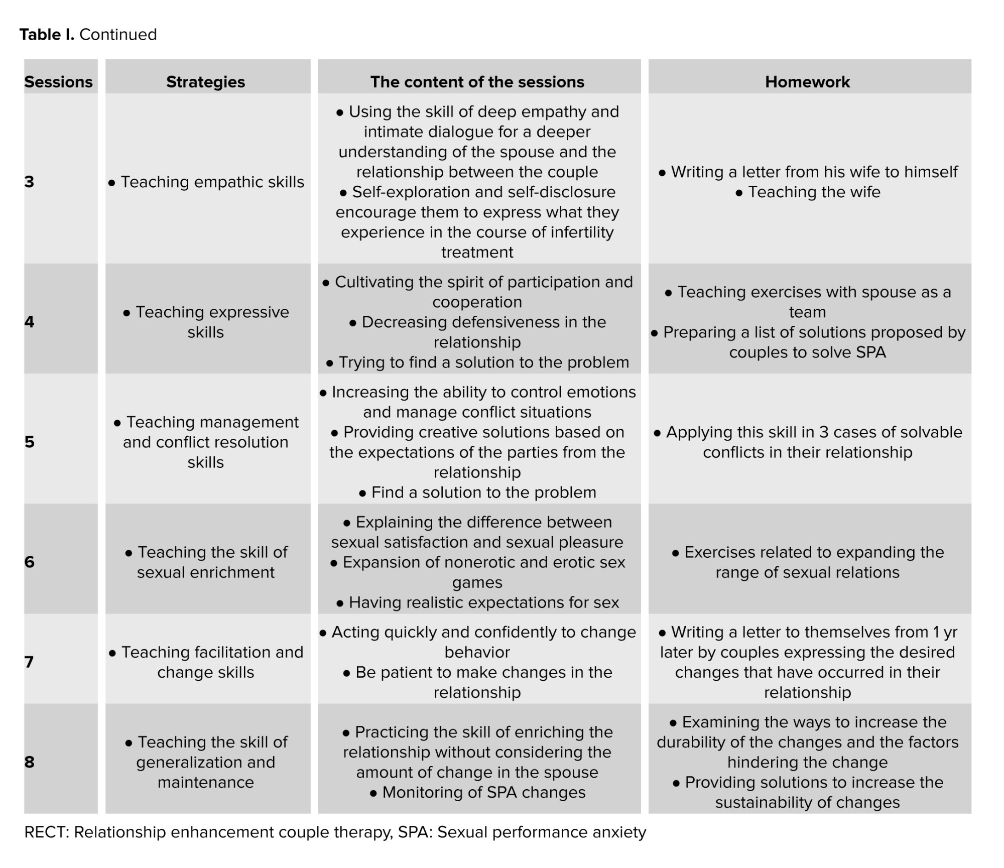 18. Vazirnia F, Karimi J, Goodarzi K, Sadeghi M. Effects of integrative behavioral couple therapy on infertility self-efficacy, dyadic adjustment, and sexual satisfaction in infertile couples. J Client-Centered Nurs Care 2021; 7: 43-54. [