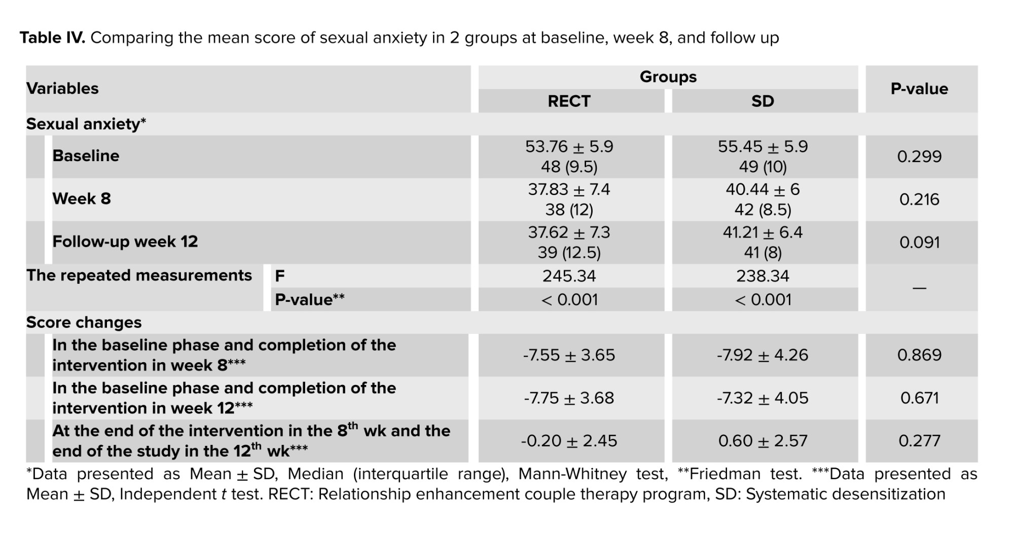 22. Khazaeian S, Navidian A, Payandeh A, Niatmoghadam N. The impact of couple therapy based on relationship enrichment approach on couples' intimacy and sexual function. Health Scope 2021; 10: e111561. [