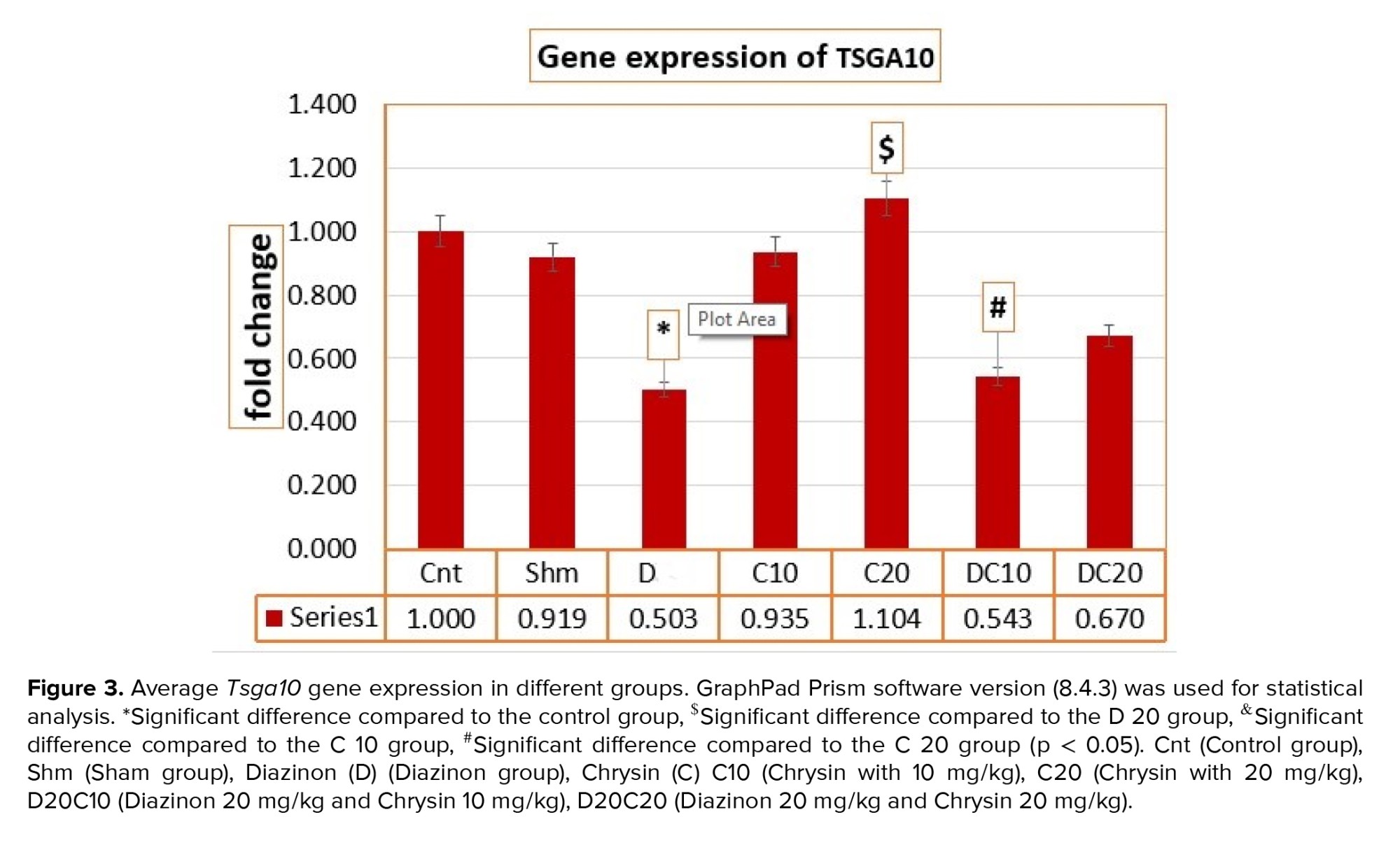 Diazinon (CAS-Nummer: 480-40-0), Chrysin (CAS-Nummer: 333-41-5), and tween 80 (CAS-Nummer: 9005-65-6) were purchased as solvents for CHR from Merck, Germany. Also, an RNA extraction kit was obtained from Macherey-Nagel (MN), a cDNA synthesis kit (Cat-Number: 4387406) from Applied Biosystems Inc (ABI), and Master Mix SYBR Green kit (Cot.NO: A325402) was prepared from Ampliqon (Denmark).
