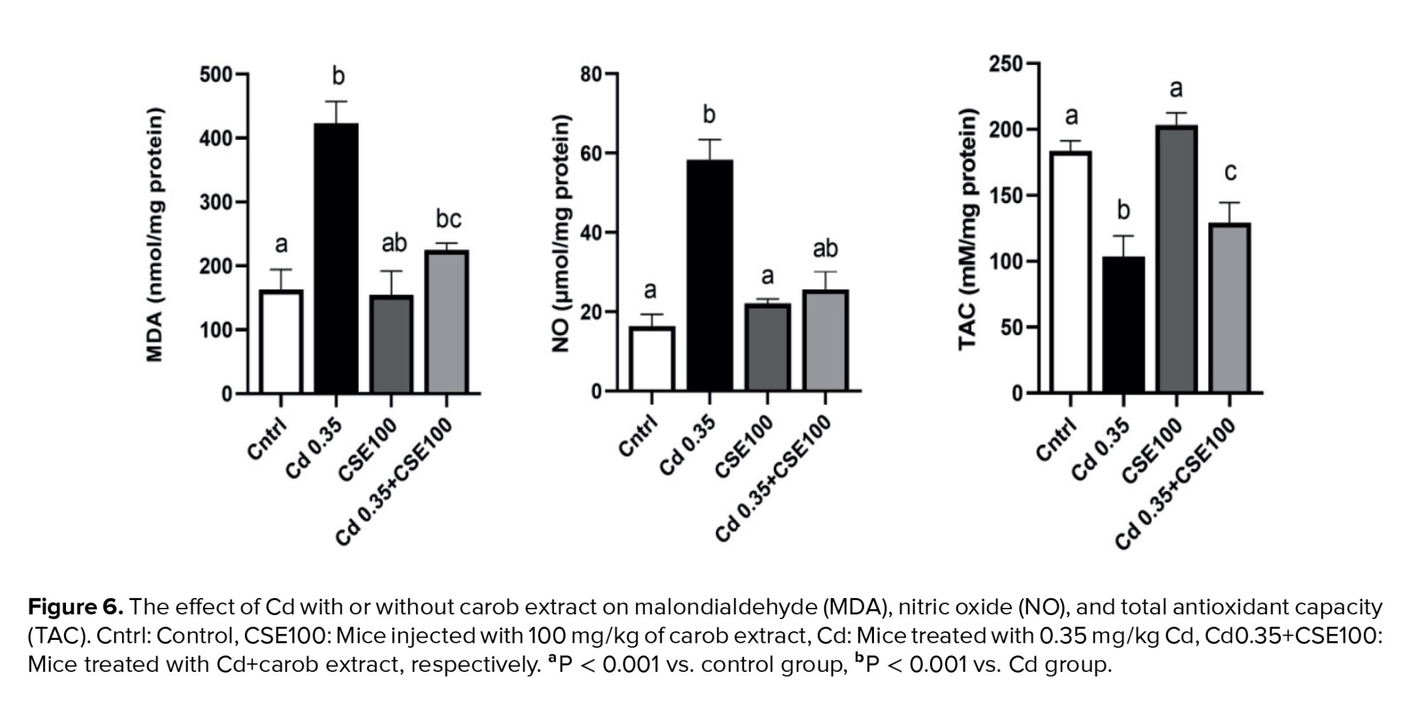 3.6. Carob modulates testicular nitro-oxidative status after Cd exposure