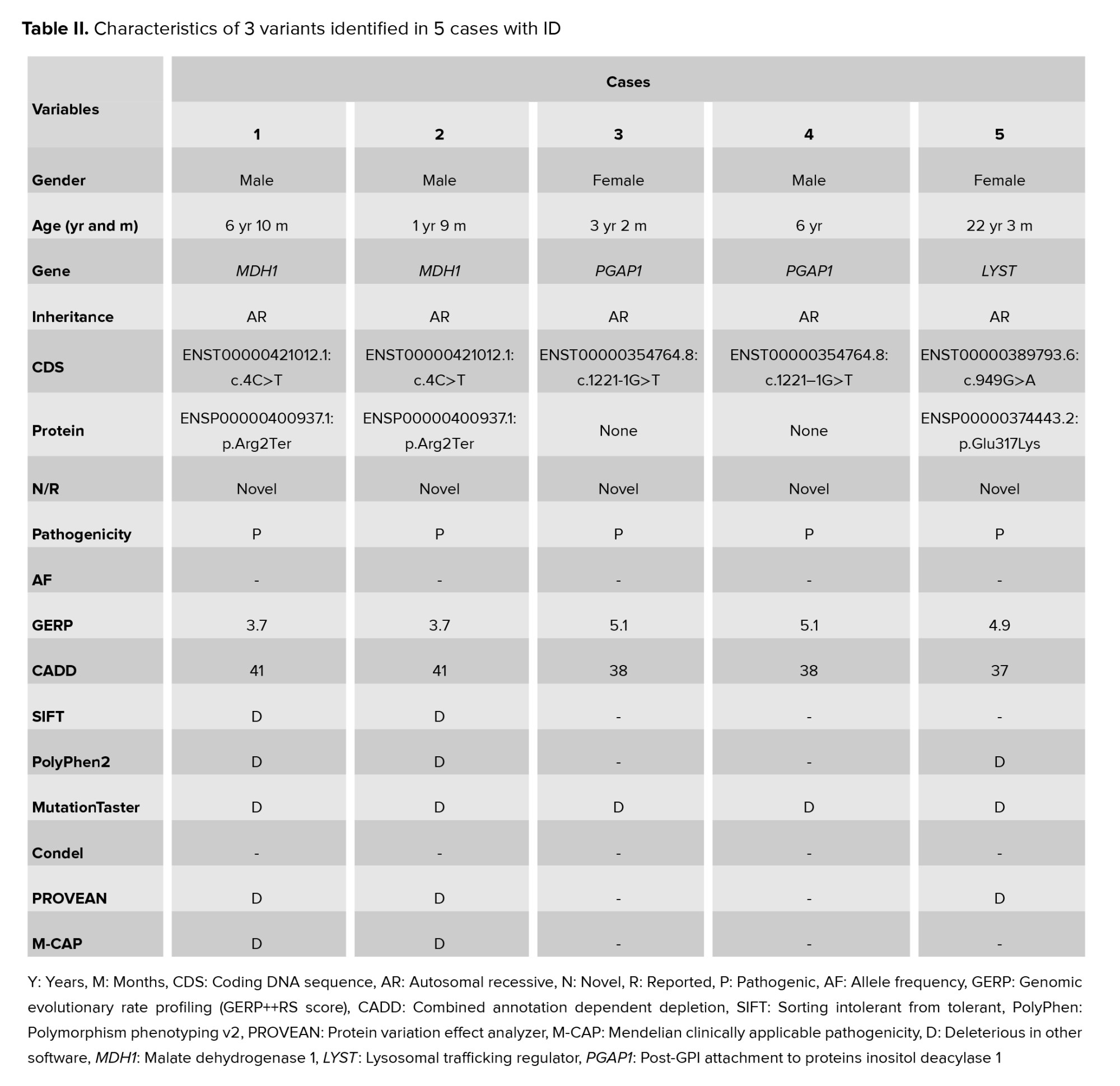 The application of WES allowed us to identify these novel mutations in genes not previously strongly associated with ID, highlighting the power of this technology in expanding our understanding of the genetic landscape of neurological disorders. PND plays a critical role in managing many genetic disorders, including mental retardation. Our study identified novel mutations in MDH1, PGAP1, and LYST genes in participants with ID, genes not previously strongly linked to ID. The identification of these mutations underscores the power of WES in uncovering the genetic basis of complex disorders. These genes are expressed in the brain and have roles in neuronal function (1).
