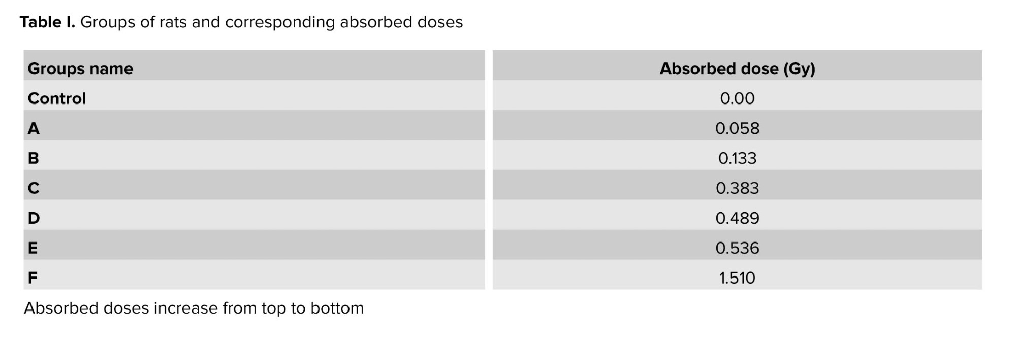 The experimental setup included a cage divided into 9 sections to improve measurement accuracy, and the absorbed dose was recorded separately in each section over 1 hr. Since the rats moved freely within the cage, the statistical mean of these measurements was used as the representative absorbed dose. This approach accounts for the spatial distribution of radiation within the cage and the random movement of the rats, ensuring a statistically reliable estimation of their radiation exposure. The final absorbed dose was then integrated over the total exposure duration of 76 hr, yielding the total absorbed dose, as presented in table I.