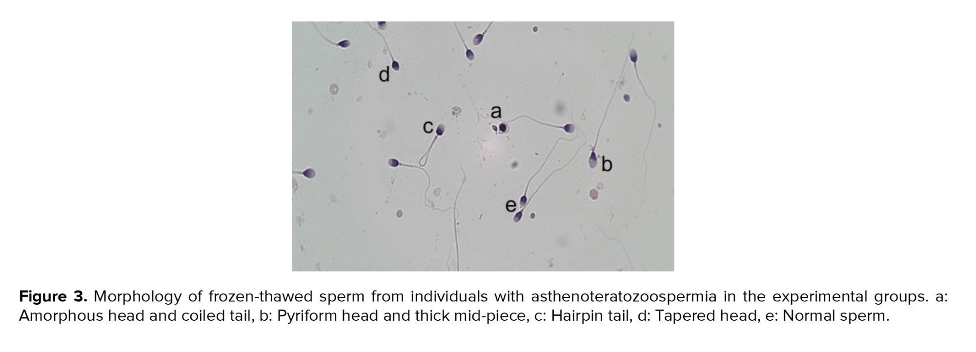Asthenoteratozoospermia is one of the causes of male infertility, and cryopreservation can be employed as a technique to manage and preserve fertility in these individuals. Despite significant advancements in cryopreservation techniques, this process inevitably results in varying degrees of damage. This includes plasma membrane disruption, DNA fragmentation, mitochondrial dysfunction, reduced motility and morphology, and increased apoptosis-all of which significantly affect sperm fertilization capacity (7).