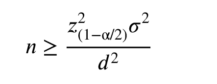 Where Z1-α 2 : 1.96 for a 95% confidence level (Z value corresponding to the desired confidence level), σ: 2.6 (standard deviation based on variability), and d: 1.15 (acceptable error/margin of error) (2).