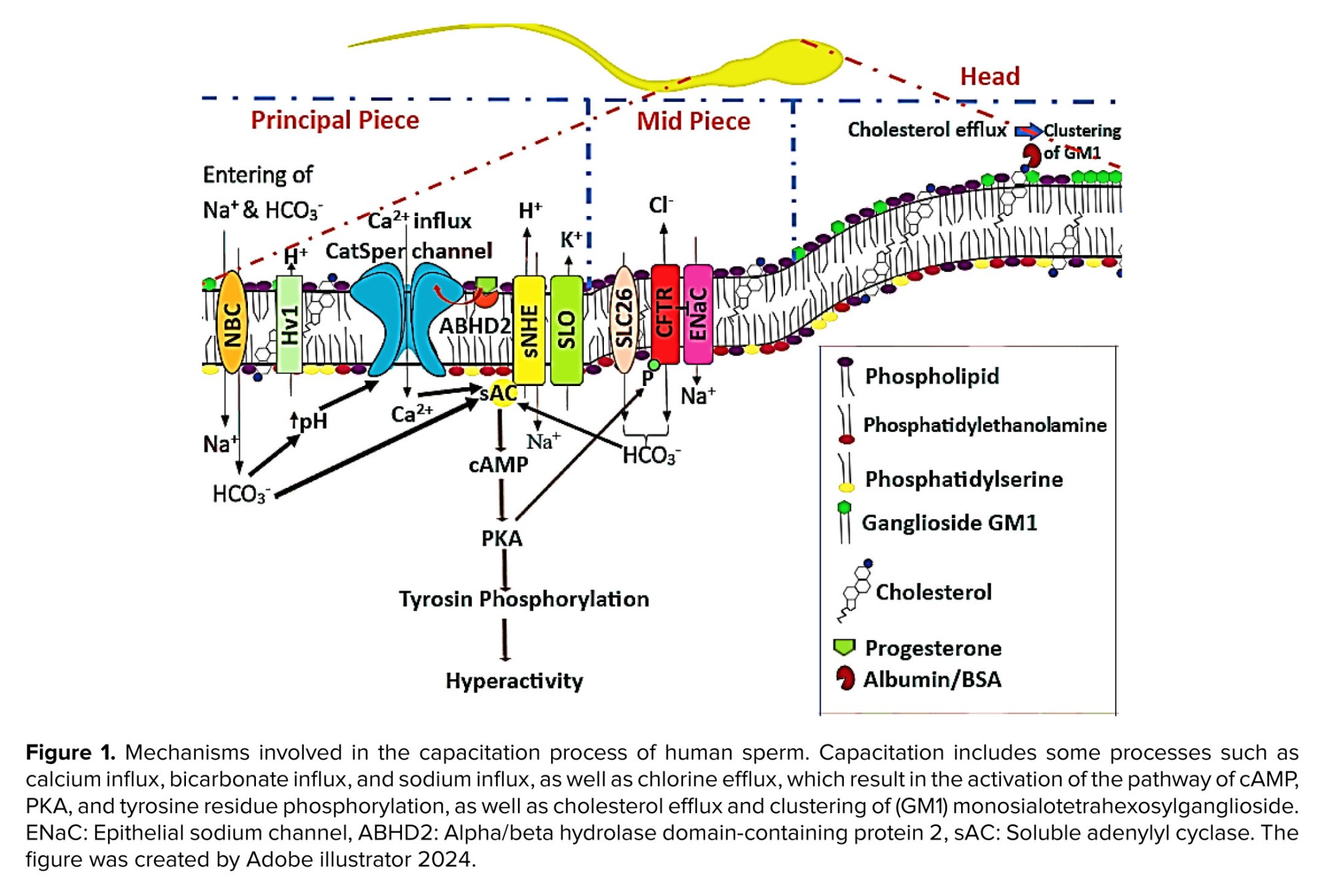 One of the most significant changes occurs during capacitation when the cholesterol levels in the sperm membrane attenuate and drop (11). Many proteins serve as acceptors for cholesterol, allowing the substance to be transferred from the sperm membrane to the proteins themselves (12).