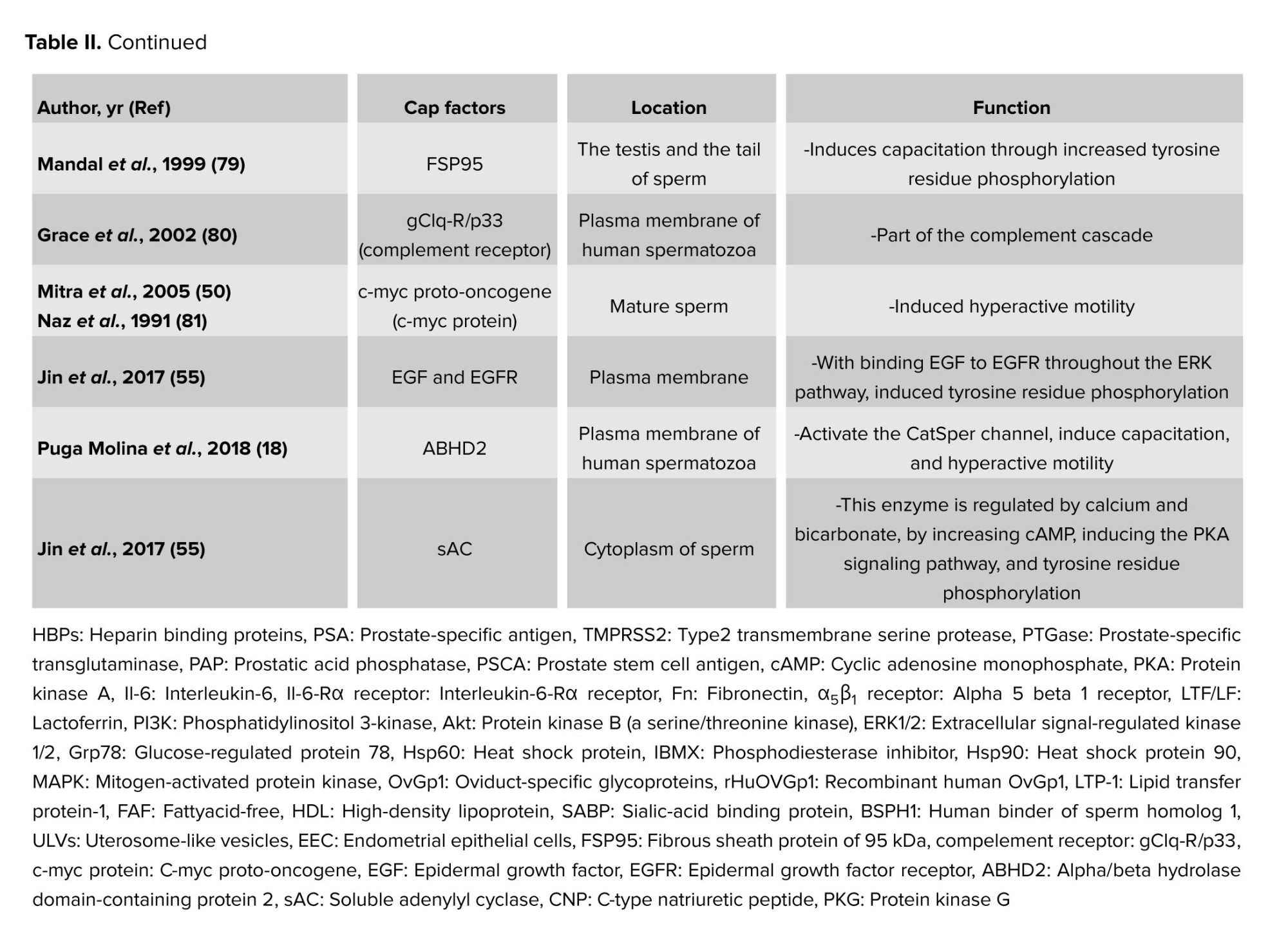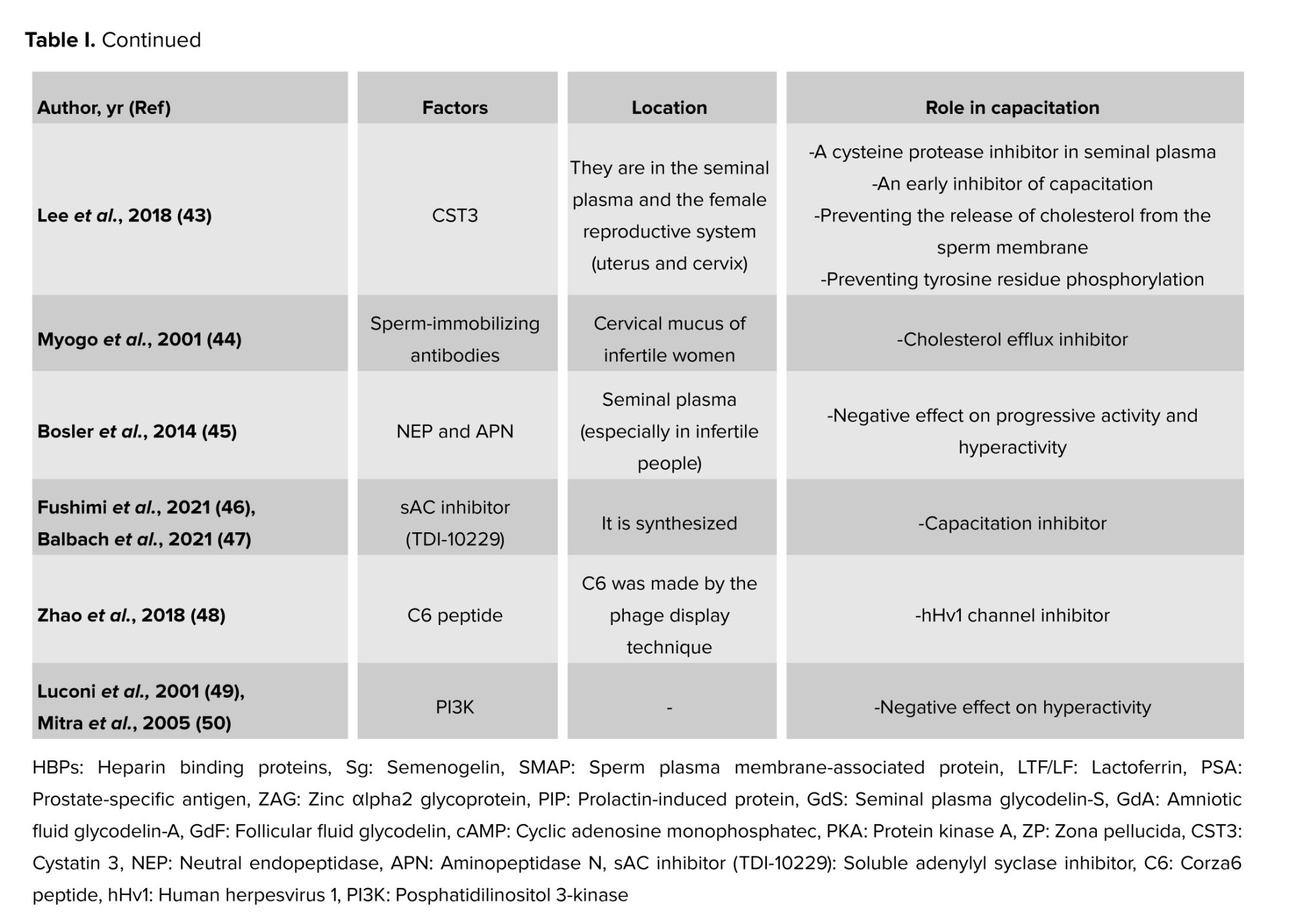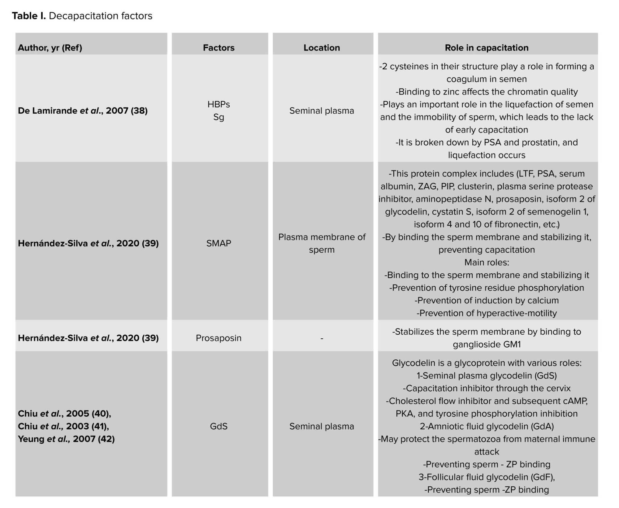 Nevertheless, some of these variables may also be involved in capacitation inhibition during sperm maturation because they have also been observed in the epididymis (8-10). A few of the crucial decapacitation protein factors are displayed in table I. The protein families that might have multiple proteins engaged in the decapacitation process are also included in this table.