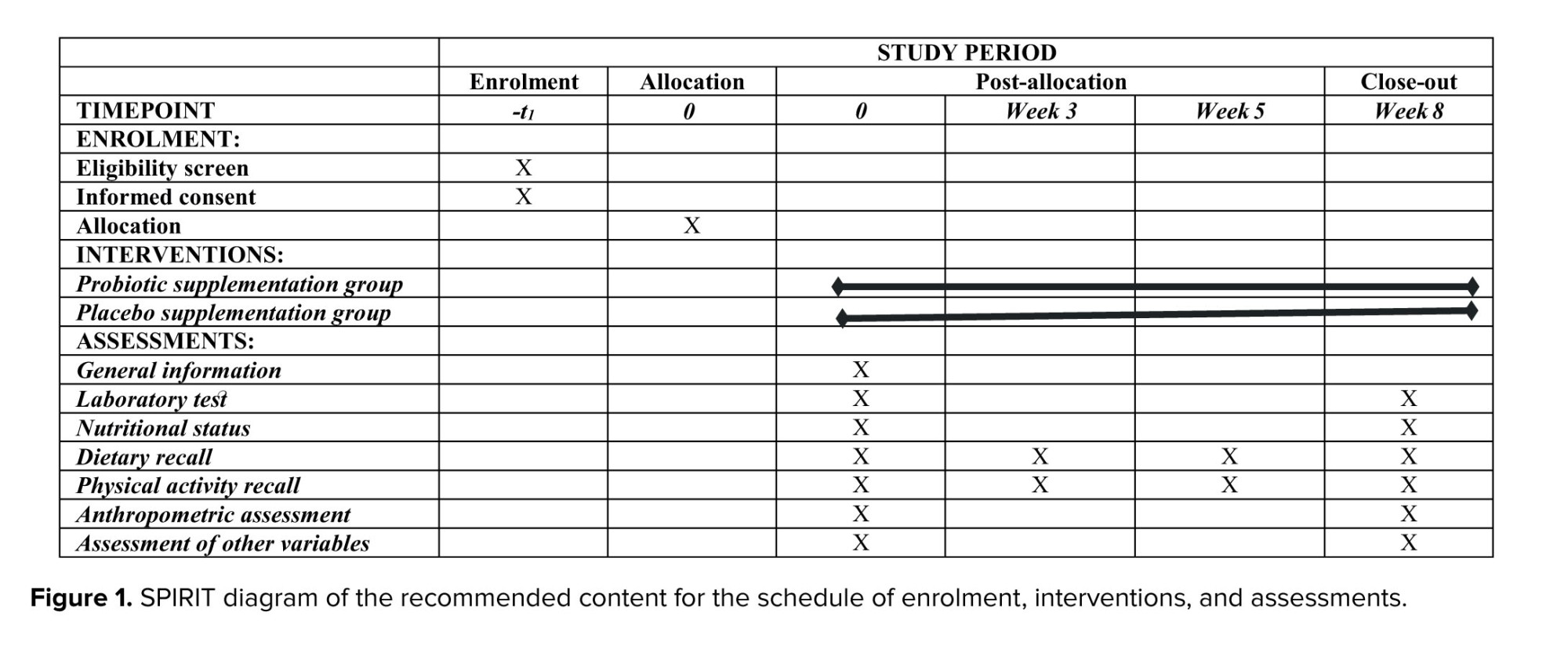 The study protocol adheres to the guidelines for reporting outcomes in trial protocols (11). The protocol schedule is provided in figure 1.